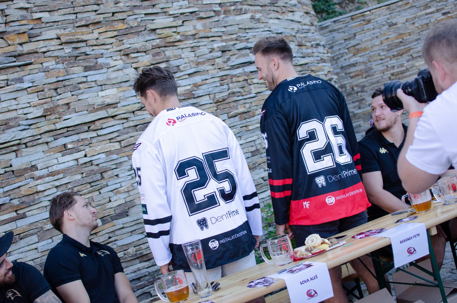 Při příležitosti akce pro všechny příznivce znojemského hokeje na pobočce jednoho z hlavních partnerů, tedy pivovaru Old Cock, představili Orli nejprve postupně všechny hráče spolu s realizačním týmem pro následující ročník 2025/26 a také dresy, které následně odhalil a pokřtil kapitán Aleš Sova spolu s asistenty Petrem Beránkem a Davidem Bartošem.